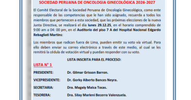 La Sociedad Peruana de Oncología Ginecológica es una asociación científica que agrupa a profesionales médicos de diferentes especialidades todas relacionadas con la prevención, detección, diagnóstico, manejo y seguimiento del cáncer ginecológico.